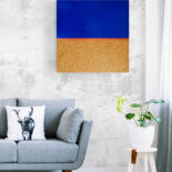 This high quality acrylic painting is done on natural cork fabric (cork leather) stretched on a wood frame, gallery wrapped, with no need for framing, as the edges are on cork. You will receive it "ready to hang", with a hook on the back. It is an exquisite work of art, due to the effect of the natural cork. Really one of a kind!